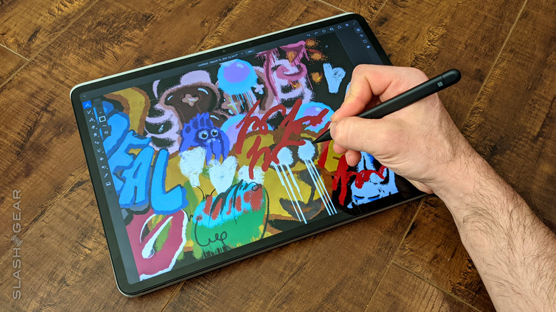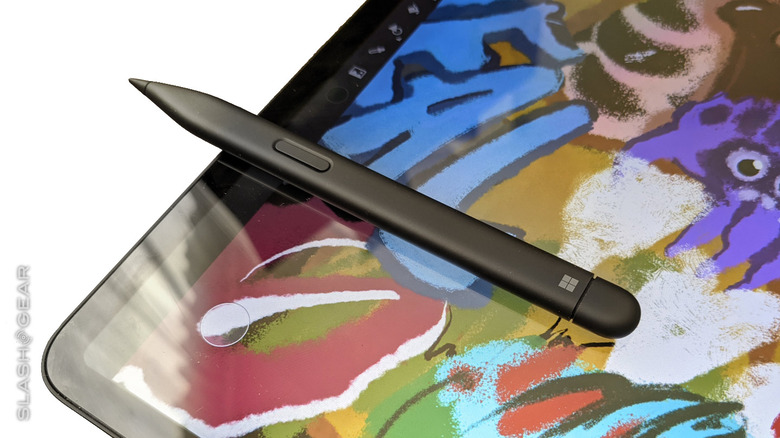 I've used this device with a variety of creative apps – here you're seeing a photo of Adobe Fresco (with Adobe Creative Cloud). With every app that utilizes Windows Ink, the pen works with haptic feedback that makes the experience feel more like a physical tool and less like a digital stylus on a glass screen.