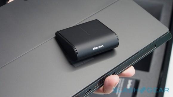 Usually, the pen clings to the right side of the tablet, magnetically attached. It's a firm grip – Microsoft says it purposefully increased the magnet strength from what holds the keyboard on – and should keep it in place even if you drop the whole thing into your bag. As the nib gets within a few millimeters of the display, the usual capacitive touch is shut off and everything is controlled via the pen instead: you can wave it above the surface of the screen to move the mouse pointer, and then tap to mimic a left mouse click. A button on the side does right mouse click duty.