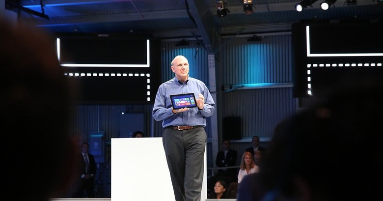 Ballmer souped up the software and let us know that Windows 8 was about to keep with Microsoft's core values while expanding their horizons. In starting with talk like "It was always clear that what our software could do would require us to push hardware, sometimes where our partners hadn't envisioned," Ballmer perhaps attempted to surprise the audience with the following: