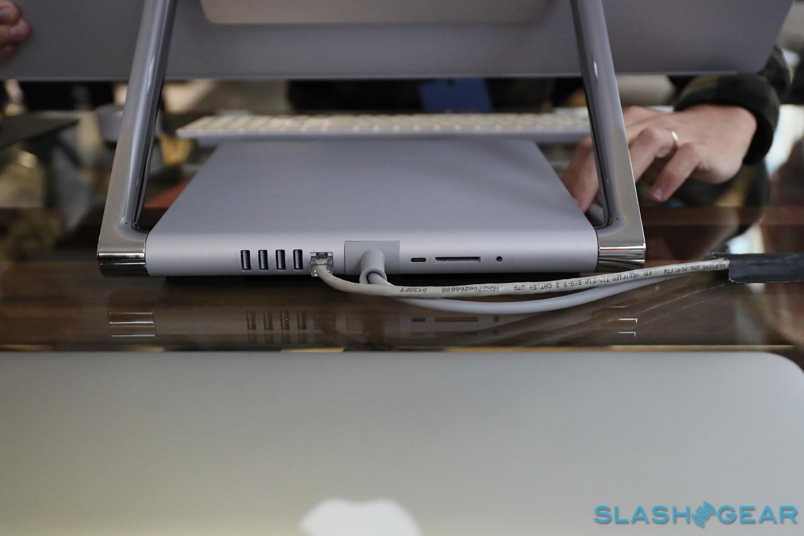 This version of the Surface includes SSD storage and – though we can't see it here – is assuredly ready to roll for both mixed reality and VR. The display is a 28" PixelSense Display with 4500 x 3000 (192 PPI) resolution, 3:2 aspect ratio, and 10 point multi-touch. Dimensions are 25.1" x 17.3" x 0.5" (637.35 mm x 438.90 mm x 12.50 mm) (for the display) and 9.8" x 8.7" x 1.3" (250.00 mm x 220.00 mm x 32.20 mm) (for the base.)
