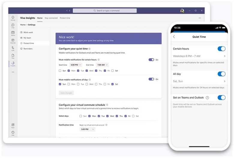 What we're particularly pleased to see is ways not only to engage with teams, but to shut all that off outside of work hours. Microsoft's Viva Insights is gaining the ability to set a "quiet time" period later this year, for instance, within which mobile notifications from Outlook and Teams will be silenced. It'll also give you feedback on just how well you're actually doing at disconnecting.