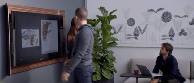 ABOVE: "Ideation Hub: A high-tech destination that encourages active participation and equal opportunity to contribute as people co-create, refine and share ideas with co-located or distributed teammates on Microsoft Surface Hub."