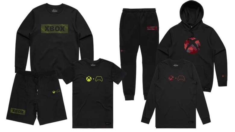 In addition to these two controllers, Microsoft is also taking the Electric Volt and Daystrike Camo colors and applying to clothing for the first release in the Xbox Icon Collection. The Xbox Icon Collection will feature limited-time apparel with various Xbox logos and icons in those two colors, and you can see some of the items on offer in the image below.
