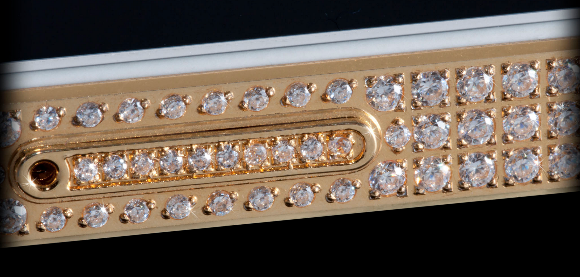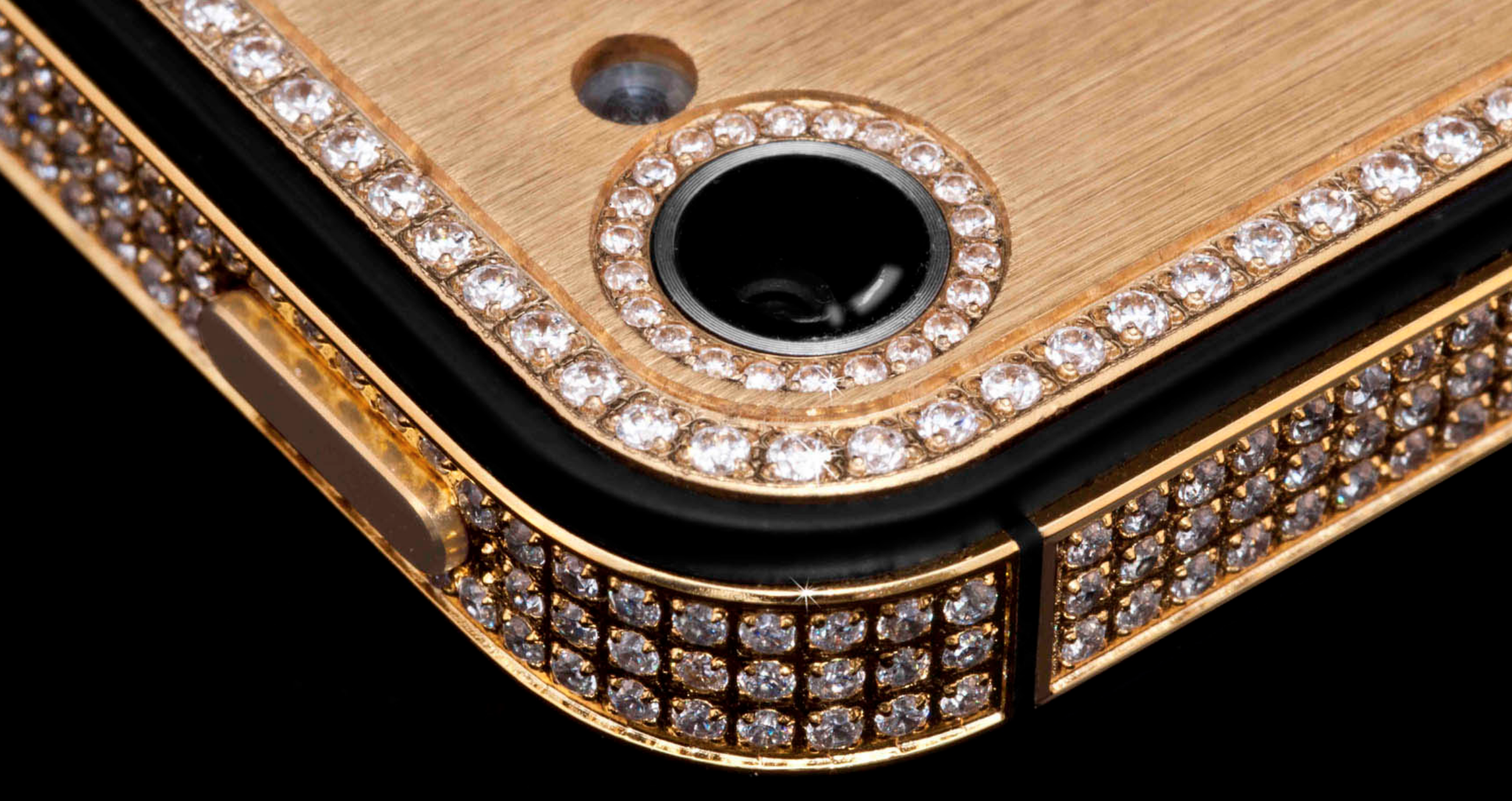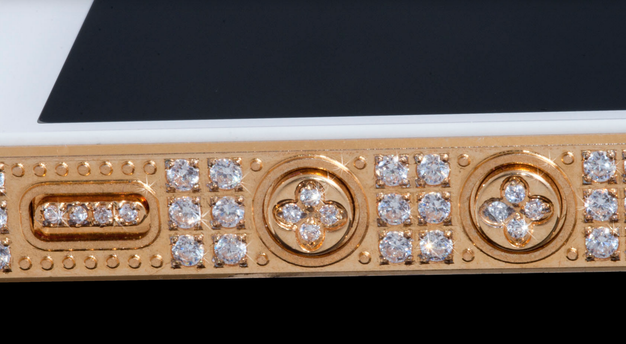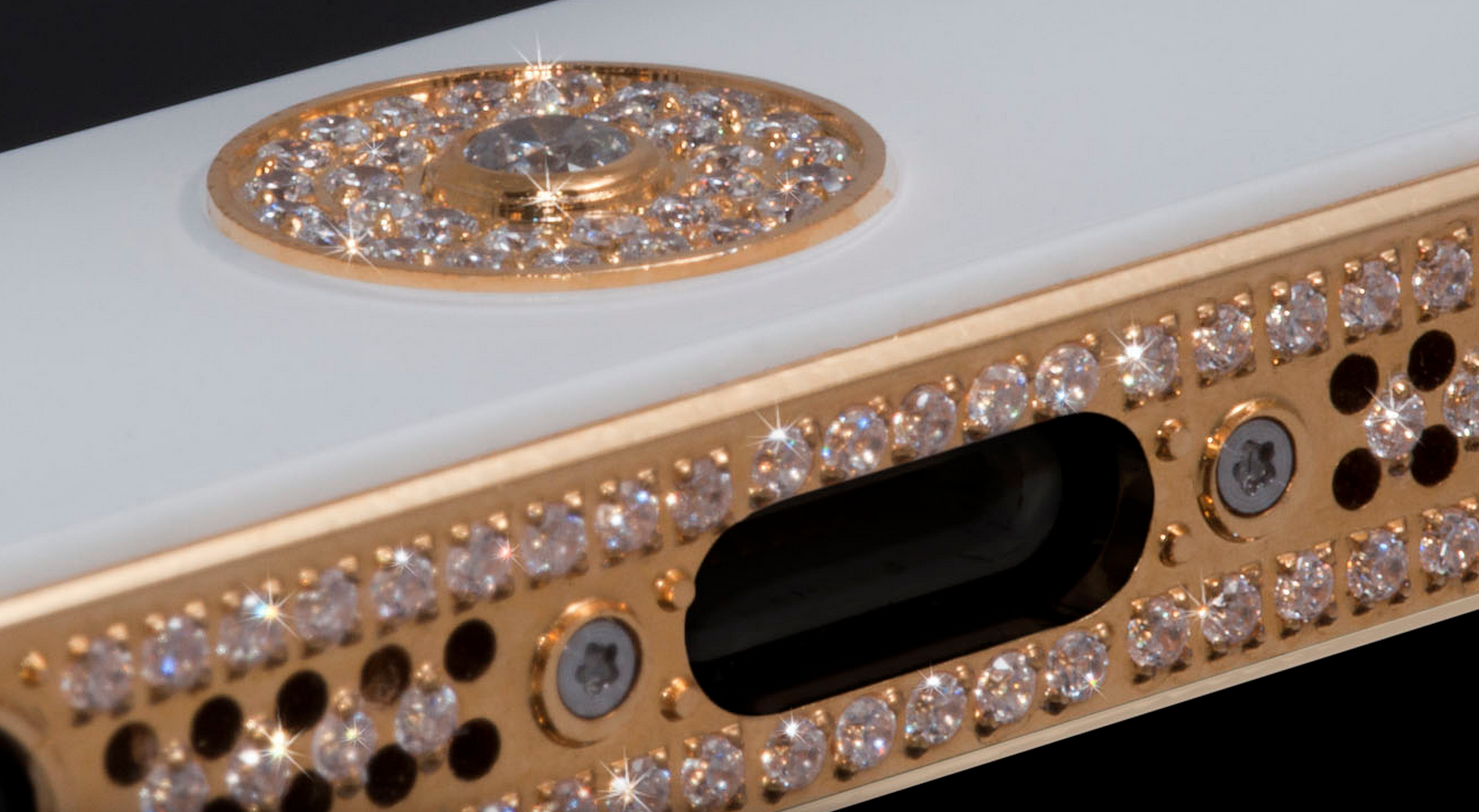 In the million-dollar iPhone 5 you'll find a bezel "handmade" of 24-carat-gold. You'll also find 700 "flawless" VVS diamonds, in total equalling more than seven carats. Around the back you'll also find a 24-carat-gold panel.