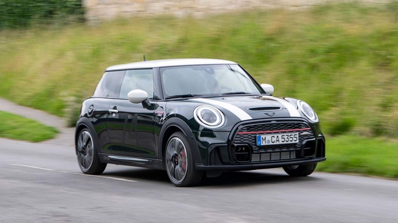Some historical nuances are found on the special edition cars, including British Racing Green metallic paint with white accents. Cars are also available in Midnight Black metallic, and in the John Cooper Works version, a body-color called Rebel Green is available. All paint finishes are combined with a roof, exterior mirror caps, door handles, and surrounds for the headlight and rear lights in white. Some exterior trim elements are offered in Piano Black high-gloss.