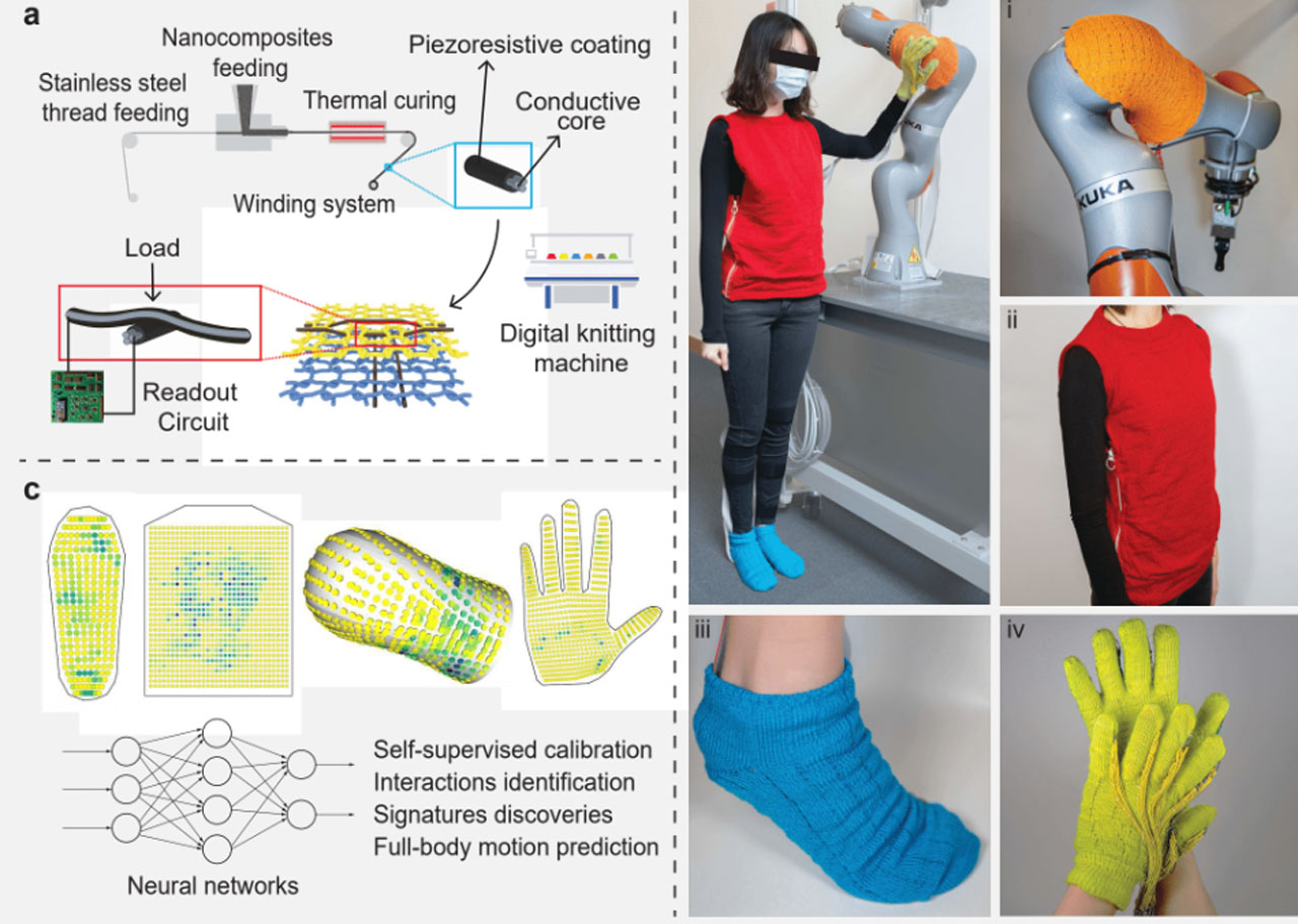 MIT researchers have developed a range of prototype wearable materials, including socks, gloves, and full vests. The so-called tactile electronics use a mix of typical textile fibers and a small amount of custom functional fibers to sense pressure from the wearer. One MIT researcher says that traditionally it was difficult to develop a mass-production wearable providing high accuracy data with many sensors. Manufacturing multiple sensor arrays results in some of them not working, and some won't work as well as others.