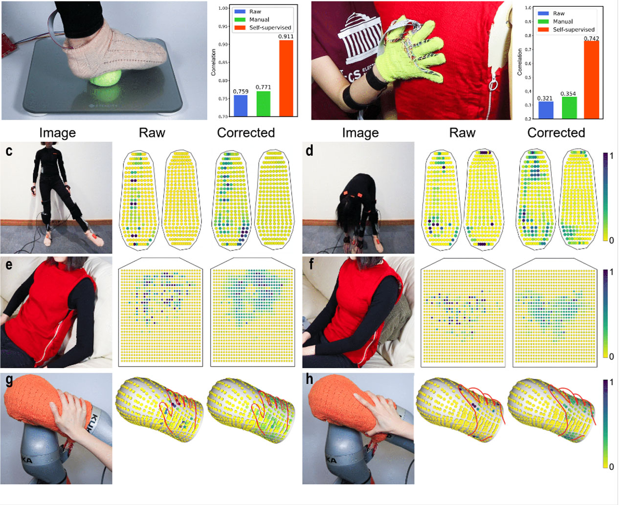 This forced the team to design a self-correcting mechanism using a self-supervised machine learning algorithm to recognize and adjust when certain sensors are off base level. The socks designed by the team were able to predict motion by looking at different sequences of tactile footprints and correlating them to different poses as the user transitions from one pose to the next. The team's vest can detect the pose of the wearer, activity, and texture of the surface it's touching.