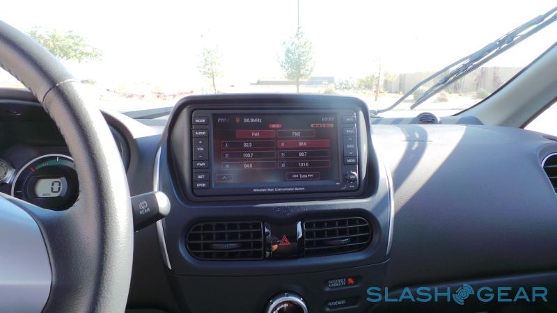 It's functional, for the most part. The plastics in general are somewhat flimsy to the touch, though you at least get air-con, power windows and mirrors, and remote central locking as standard. There's also a heated seat, on the driver's side only, which Mitsubishi recommends using instead of cranking up the HVAC on a cold morning, since it's more power-frugal; alternatively, you can turn on the HVAC (to the last used settings) remotely from the keyfob while the i-MiEV is still plugged into the mains. The touchscreen audio system, complete with Bluetooth streaming/hands-free, a reversing camera, and navigation is comprehensive, though not the easiest to use.
