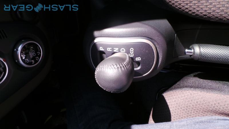 Given the ostentatious exterior, we'd half expected the sort of swooping, LED-encrusted dashboard that would make a concept car jealous. In fact, the i-MiEV's interior is surprisingly sober. The plastic top dash panels match the purplish-brown seat fabric for color, with a bulbous central stack topped with a sizeable LCD display above the HVAC controls and finally the gear shifter at the bottom. The latter looks like it could've been pulled from any automatic car, with the usual park, neutral, drive, and reverse options, as well as an "Eco" mode a notch away.