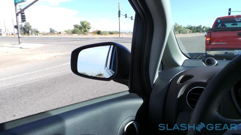 You still get four doors, however, and four seats inside – the rear seats fold down individually, boosting the trunk's compact 13.2 cubic feet of storage to a more useful 50.4 cubit feet – with room for adults front and back. It's an upright ride with plenty of headroom, though the limited width can mean those in the back sit closer together than usual. Despite the price, the only leather you'll find inside is wrapping the steering wheel and shifter knob; the seats are sturdy fabric, instead, and adjusted manually not electrically.