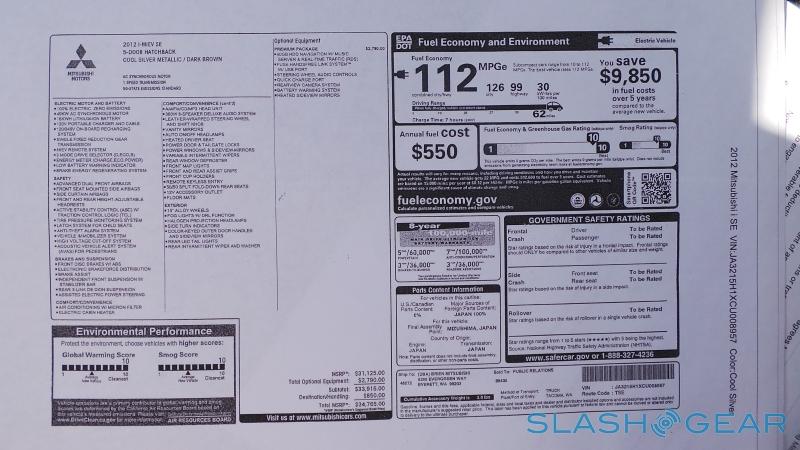 As with all EVs, the big question mark hanging over the i-MiEV is range. Mitsubishi quotes an EPA MPGe (miles per gallon equivalent) of 126 for city driving, 99 for highway driving, and 112 combined; total EPA range is 62 miles.