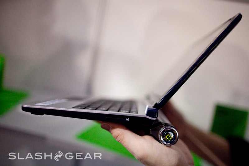 In use, Mobinnova's OS – a custom UI built on top of Windows CE – proved smooth and responsive, and we were able to open up several Firefox tabs as well as play media simultaneously without any slowdown. NVIDIA also showed us the Beam playing 1080p footage on an HDTV, which played without a pause. Later on there'll be an Android version of the Beam too, though that wasn't ready for CES 2010. The pay-off to the bag-friendly scale is a relatively small 8.9-inch (1024 x 600) LCD and a keyboard that's a little on the cramped side for our liking, but there's no arguing with the portability.