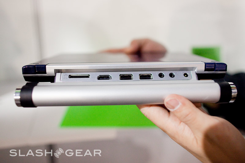Part of what makes the Beam so distinctive from the netbook rank-and-file is its twisting hinge section, which flips down to prop up the keyboard at a comfortable angle as well as to reveal the ports. Since Tegra 2 supports 1080p Full HD, Mobinnova have fitted the Beam with an HDMI output along with the usual USB 2.0 and audio in/out; there's also a multifunction connector which – with a dongle – adds ethernet and VGA.