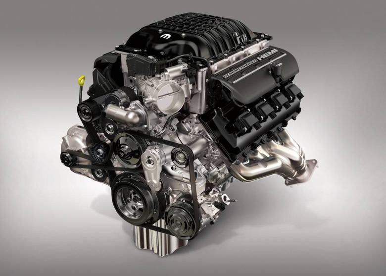 Each engine will be dyno-tested for 42 minutes, Mopar says, before it's crated up and shipped out. That includes a supercharger with throttle body, fuel injectors, coil packs, water pump, and the front sump oil pan and flexplate. An optional Front End Accessory Drive (FEAD) Kit will add an alternator, power-steering pump, belts, pulleys, and mounting hardware; there's also a manual transmission package.