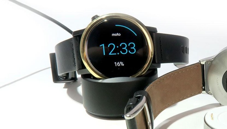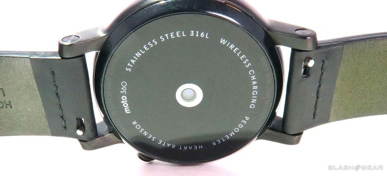 While competitor devices are working with magnetic chargers with charge pins, the Moto 360 (2015) works with Qi-standard wireless charging technology. While this does mean that you'll technically be able to charge on any Qi-standard wireless charging stand, you're still going to want to keep the Motorola-made Moto 360 stand around if you wear the watch while traveling.