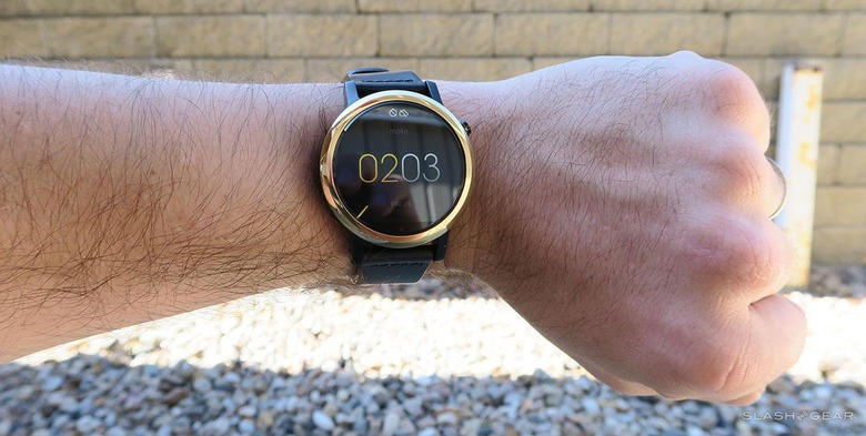 Here you're seeing the Moto 360 (2015) in direct sunlight. The display is obviously put at a disadvantage here, but remains viewable.