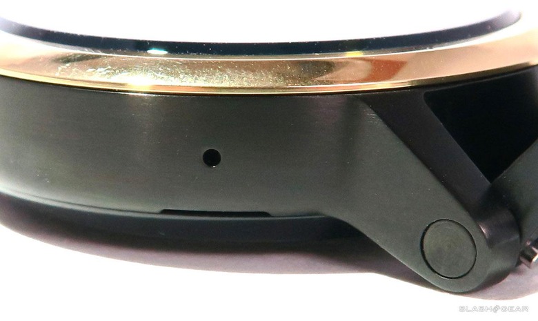 Here you'll see the Motorola "M" logo on the Moto 360 (2015)'s one hardware button. This button is able to rotate so the emblem can be any angle – while some might consider this a flaw, others might consider it a perk.