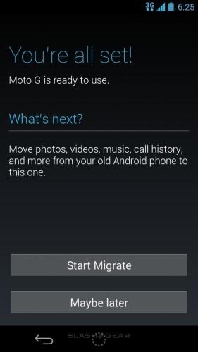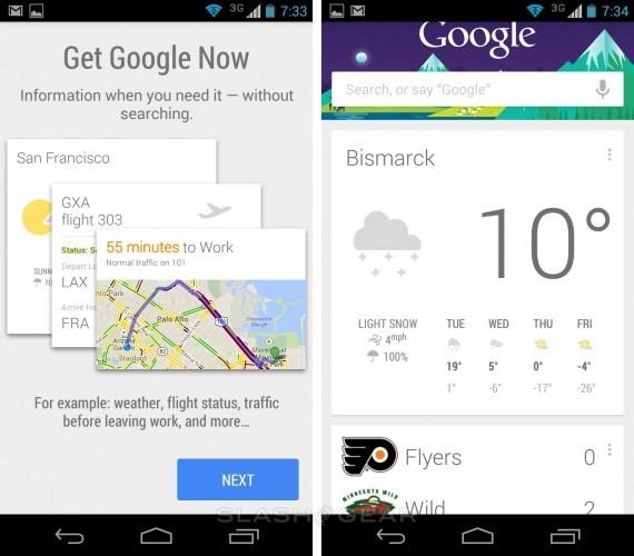 You'll be able to access Google Now because you're working with Android 4.3 Jelly Bean right out of the box. Motorola also suggests that the Moto G will work with Android 4.4 KitKat by January, bringing it to a place that's extremely similar to where the Moto X rests today software-wise.