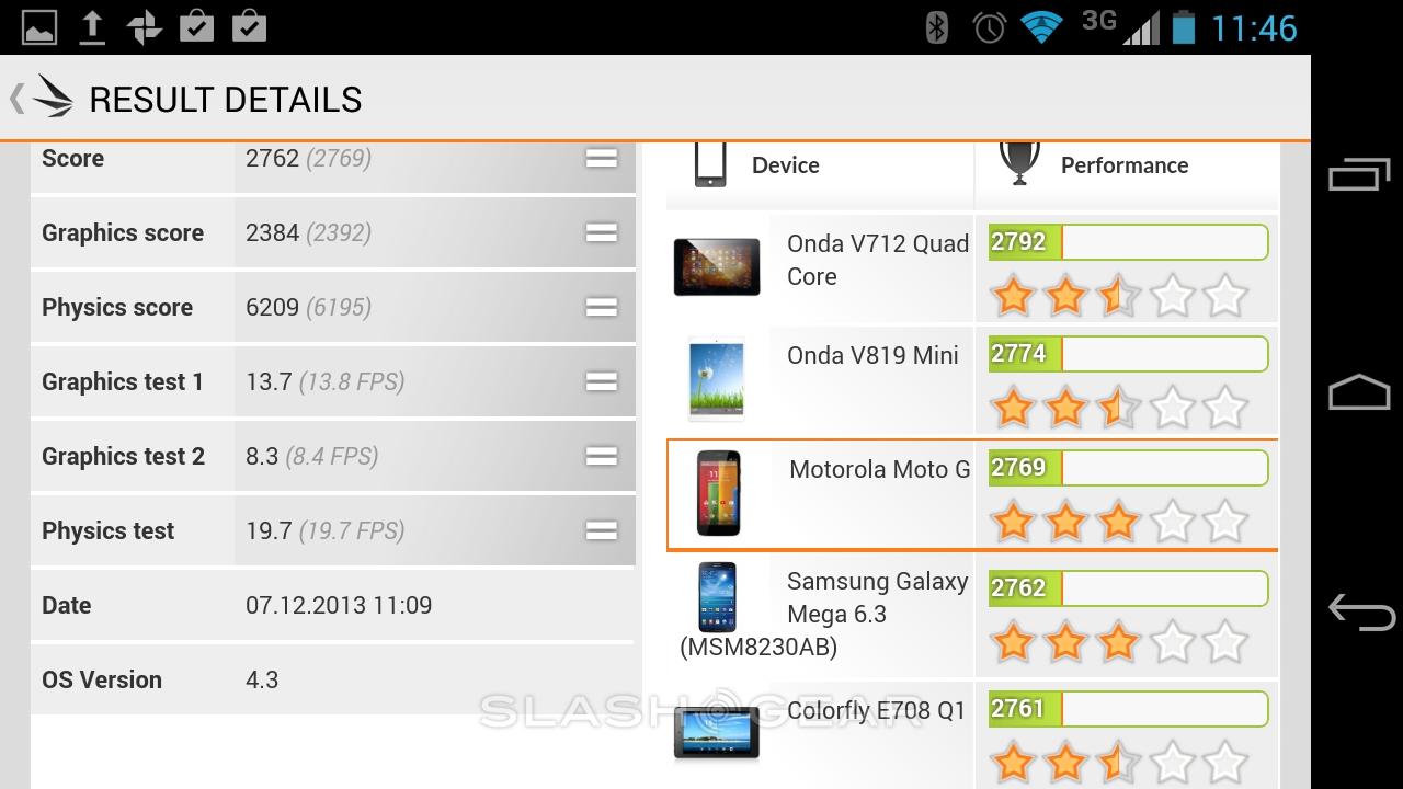 But what a surprise – this device isn't half bad, either. Out-performing on synthetic tests against the best of the best in 2012's hero devices, the Moto G's scores suggest we've got more than just a lowest-end machine.