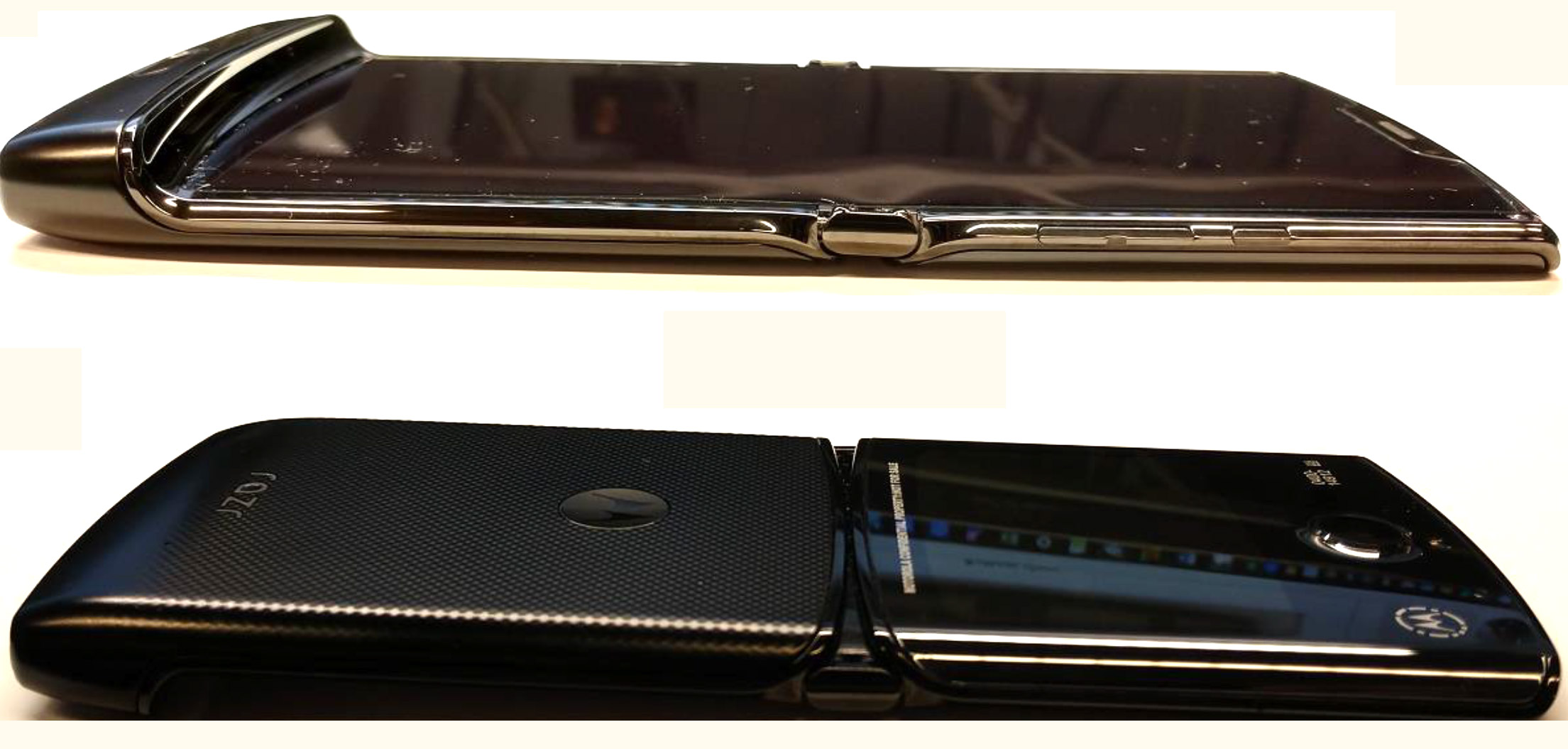 Above and below you'll see the photos of the Motorola "Moto Razr" 2019 in all its screen-off glory. You can see a variety of physical elements here, confirming previous hypothesis and analysis here on MMtech Online as well as a dozen other early-look websites.
