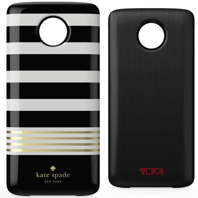 The full collection of Moto Mods has not yet been revealed, but as you can see above and/or below, there'll be both Motorola and 3rd-party creations coming from all directions. Top names in travel like TUMI, fashion like Kate Spade, and audio like JBL – all are participating in the Moto Mods hardware release program.