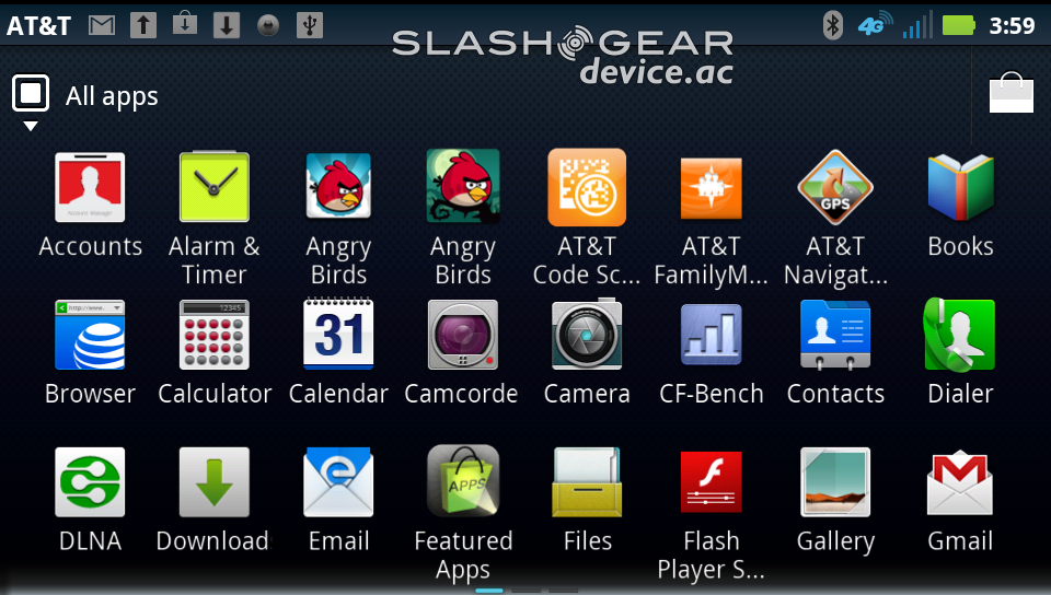 Inside your apps drawer you've got the ability to see only recent apps, downloaded, AT&T provided, or all. You'll also notice the lovely 3D horizontal appearance of the apps, this also unique to Motorola devices. Unlike some iterations of Android, you can also view your apps drawer in landscape mode, a feature you'll definitely appreciate when you're working with your mobile view via HDMI to an HD television.