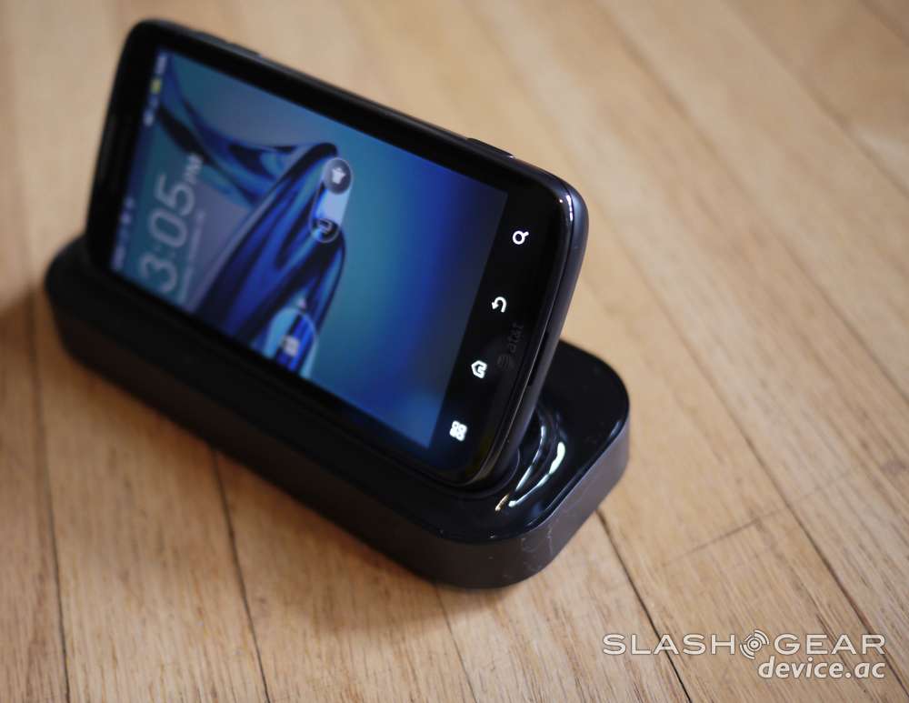 The HD Multimedia Dock – also just called HD Dock in some places, is custom formed for the ATRIX 2. Where I'm sure you'd be able to jam your ATRIX 2 in your original ATRIX HD dock, here its ever-so-slightly updated to fit this device specifically UPDATE: actually the ports are opposite, so the original ATRIX will certainly not fit. It's got a power port for a cord that plugs into your wall (without which you cannot use the dock), three full-sized USB ports (for keyboards and mice and I'm sure video game controllers once Ice Cream Sandwich rolls around), and microHDMI. Since you've already got a microHDMI port on your ATRIX 2 right out of the box, plugging in here will offer 2 possible plusses: accessing Webtop with a mouse and/or keyboard, and having the device stand up so you can use it as a clock – or of course tap away at your Netflix queue in slightly more of a classy way than just doing so with the smartphone sitting flat on your table next to your TV.