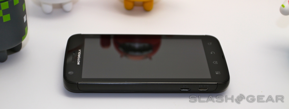There's a microSD card slot for a further 32GB, and given the ATRIX 4G will shoot 720p HD video and – with its Entertainment Center – is aiming to handle your A/V requirements, that storage potential is very welcome. Connectivity includes triband HSPA+ (as per AT&T's 4G branding) and quadband GSM/EDGE, along with WiFi b/g/n with support for both 2.4GHz and 5GHz bands, Bluetooth 2.1+EDR and the microUSB/HDMI ports. GPS, a digital compass and an accelerometer round things out.