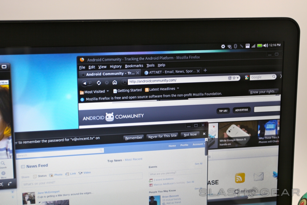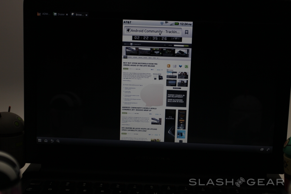You can boot into the Entertainment Center – more of which in the HD Dock section – or, more likely, the browser (there are shortcuts for AT&T, Facebook and Motorola, but they simply open the relevant pages in Firefox), and both the phone view and browser view can be maximized to full-screen (though the phone image is merely magnified, not upscaled, so gets relatively pixelated in the process).