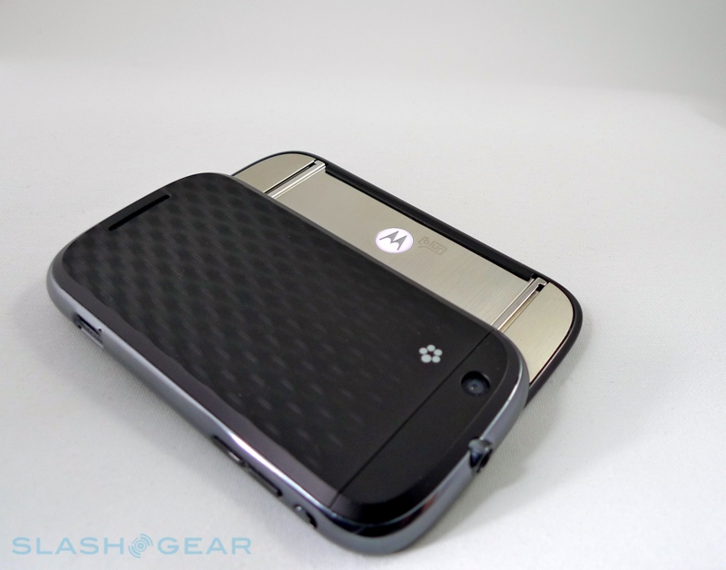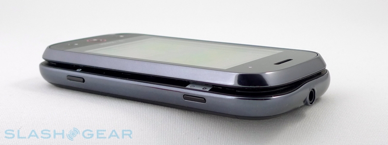 Still, all that chassis space has allowed Motorola to fit in a 3.1-inch HVGA capacitive touchscreen and a slide-out QWERTY keyboard, together with a D-pad and a few minimal front-panel buttons: home, menu and back. There's also a volume rocker on the top left-hand side, flanked by a microUSB port and a mute-switch, a 3.5mm headphones jack on the top, and a power/lock/unlock button and camera button on the right-hand side.