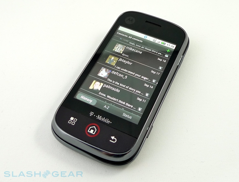 As for pricing, the Motorola CLIQ will come in at $199.99 with a new, two-year contract on T-Mobile. The carrier will begin taking preorders from October 19th, as long as you're an existing customer; deliveries – together with general sales availability – won't be until November 2nd. That makes it $50 more than the myTouch 3G, which of course lacks a physical QWERTY keyboard, and $70 more than the T-Mobile G1. Given the G1's age, and the added benefits of MOTOBLUR, we'd certainly pick the CLIQ over the older handset.