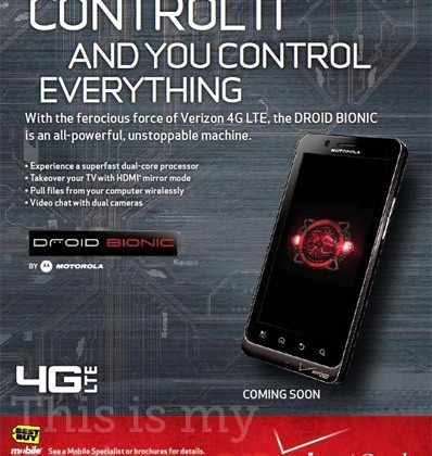 The Droid Bionic will have a giant 4.5-inch qHD touchscreen now powered by a dual-core processor, the first to also be running on the blazing fast Verizon 4G LTE network. The Best Buy ad's tag line sure conveys a powerful message: "With the ferocious force of Verizon 4G LTE, the Droid Bionic is an all-powerful, unstoppable machine." However, no details hint at a more specific release date, although recent FCC documents suggest the device is for sure on its way.