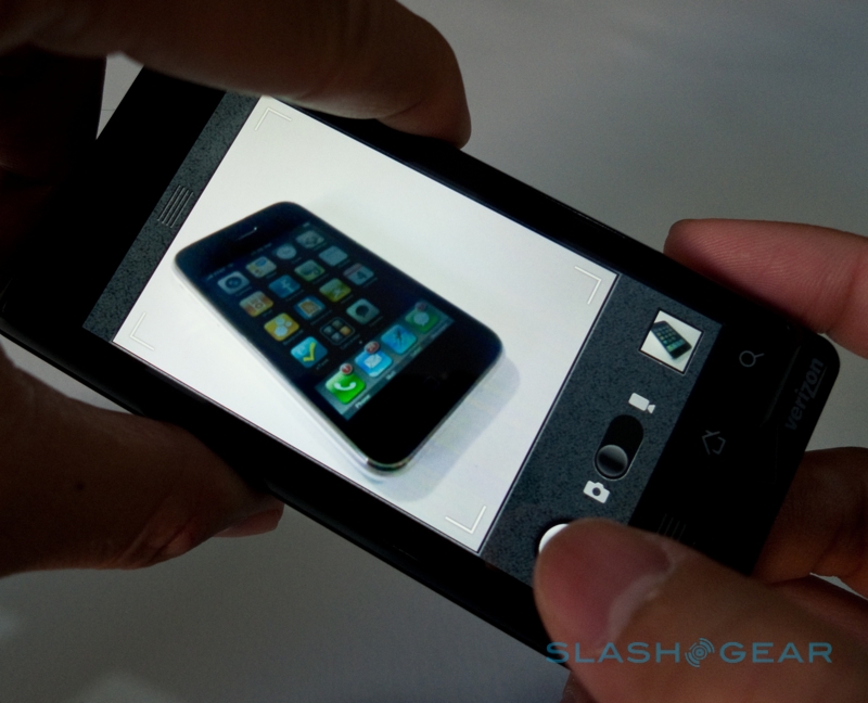 The only other hardware controls on the DROID are a slightly-too-rigid power/lock button recessed into the top edge, the volume controls on the side and a camera shortcut; the back, search, menu and home keys under the display are all touch-sensitive. In contrast to the overly firm power key, the volume controls proved all too easy to press while extending the keyboard; on a few occasions we missed calls having inadvertently set the DROID to silent.