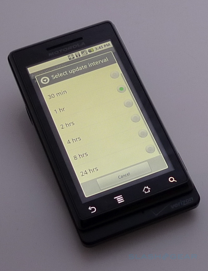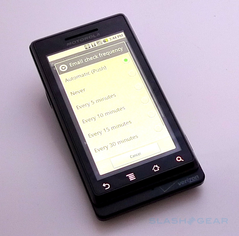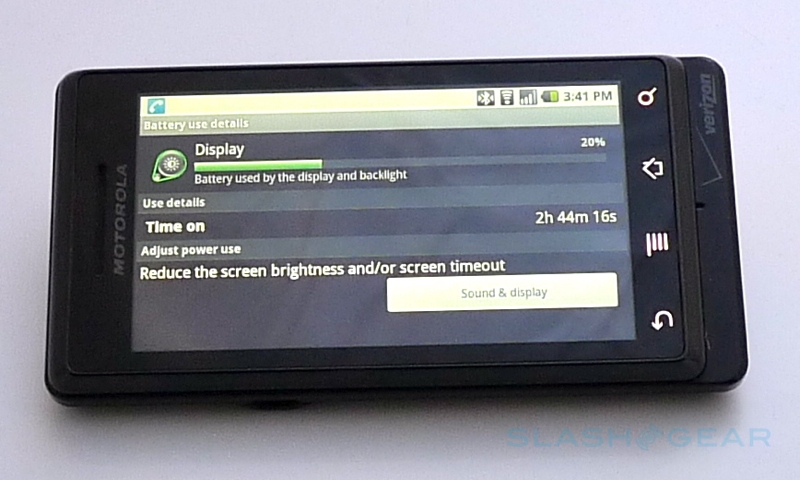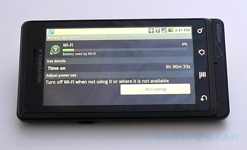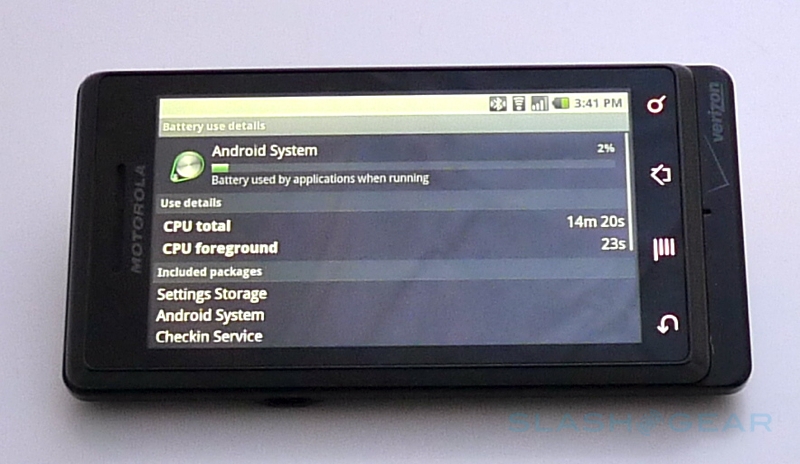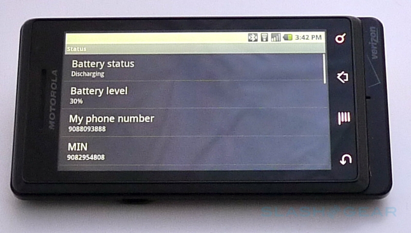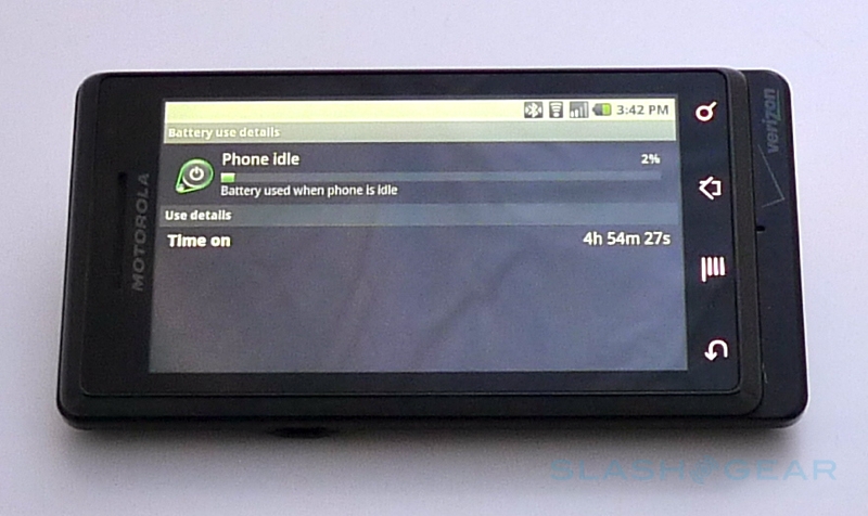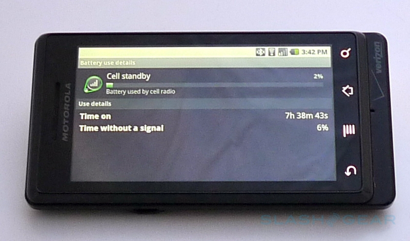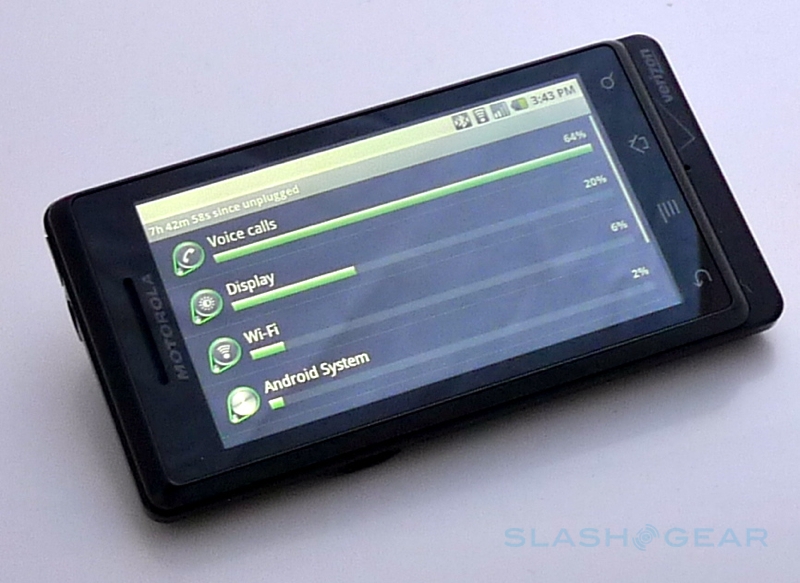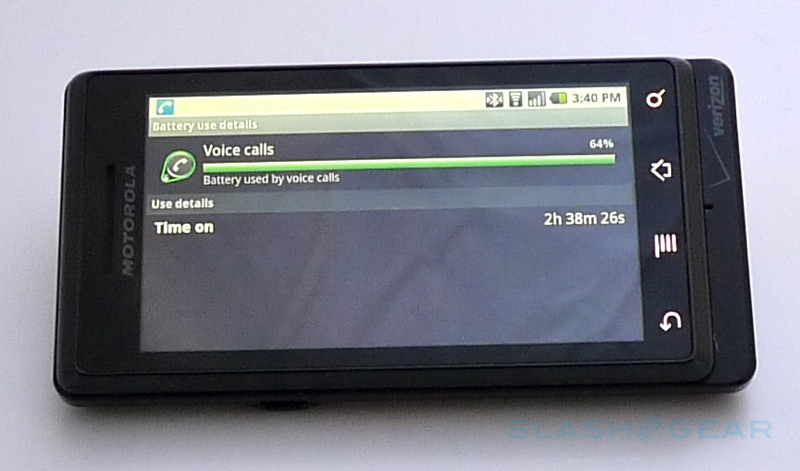 What has been improved, though, is power management, and you're now able to shut down individual processes rather than relying on Android to natively do so. Considering this has been a bug-bear for all Android handsets to-date, it's a very welcome tweak. As we've shown in our previous DROID highlights article, there's now granular tracking of power consumption, with bars indicating which aspects of use – system processes, voice calls, WiFi, etc – made the biggest demands on the battery. Motorola rate the DROID for up to 6.4hrs talkative or 11.25 days standby, and in fact runtimes have been a real source of surprise for us. Even with Exchange push, Bluetooth and WiFi turned on we saw more than a full day's use out of the DROID, and while you'll probably end up charging it nightly there's certainly the potential here to push through a full day and into the next if you're stuck away from a power point. Recharging is via the microUSB port, and we're glad to see the generic connector; Verizon have also confirmed that as of early 2010 you'll be able to add data tethering to your DROID contract, so that same microUSB connector will be used to hook up a notebook for mobile internet access.