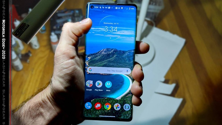 The display on the Motorola Edge+ is 6.7-inches diagonally with HDR10+ OLED tech and "nearly 90 degree wrap." The panel works with 90Hz image refresh rate that can be adjusted (down to 60Hz) for battery conservation if you do so choose.