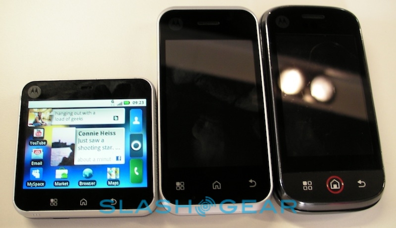 It wasn't just the Motorola XT720 we grabbed some playtime with this morning; we also caught some hands-on time with the company's diminutive FLIPOUT, announced last week. In some ways the FLIPOUT is more of a surprise than the XT720 proved to be, mainly because it's actually very usable despite the palm-sized dimensions. The QWERTY keyboard is reasonable to type on, and the rotating screen section may be the spiritual successor to the Sidekick's spring-loaded display when it comes to absent-mindedly fiddling with your phone.Video hands-on after the cut