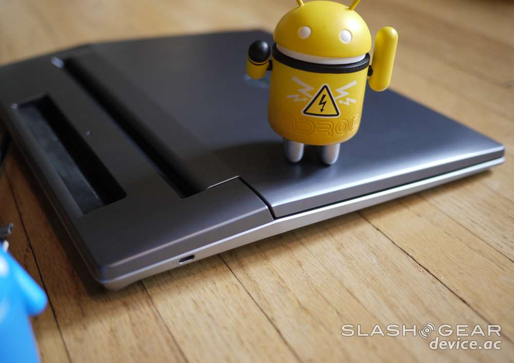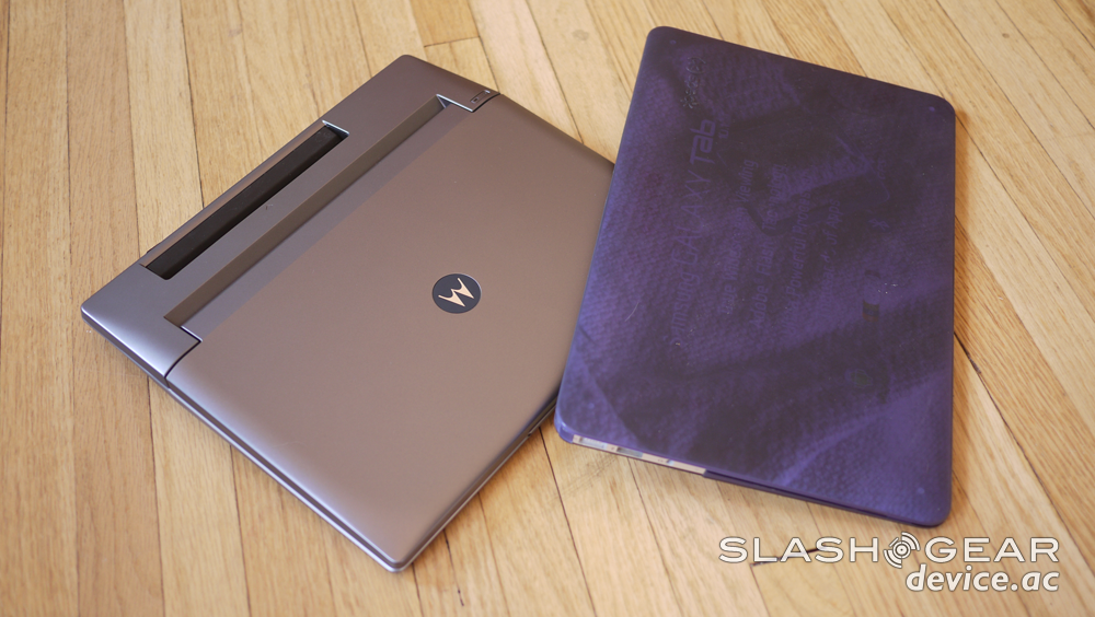 The speakers on this device, though they sit below the back and outward in a unique fashion, do not add up to full-fledged laptop speakers. The MacBook Air (which you see toting a SPECK cover in the photo above,) has speakers that blow the Lapdock 100 away. Similarly, though Motorola isn't quite being specific with consumers about the display, I can say very unscientifically that it's OK but by no means great. Viewing angles are at 90 degrees before getting a bit washed out, and again this is simply no match for any of the current MacBook range.