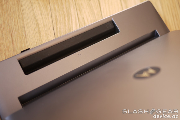 The speakers on this device, though they sit below the back and outward in a unique fashion, do not add up to full-fledged laptop speakers. The MacBook Air (which you see toting a SPECK cover in the photo above,) has speakers that blow the Lapdock 100 away. Similarly, though Motorola isn't quite being specific with consumers about the display, I can say very unscientifically that it's OK but by no means great. Viewing angles are at 90 degrees before getting a bit washed out, and again this is simply no match for any of the current MacBook range.
