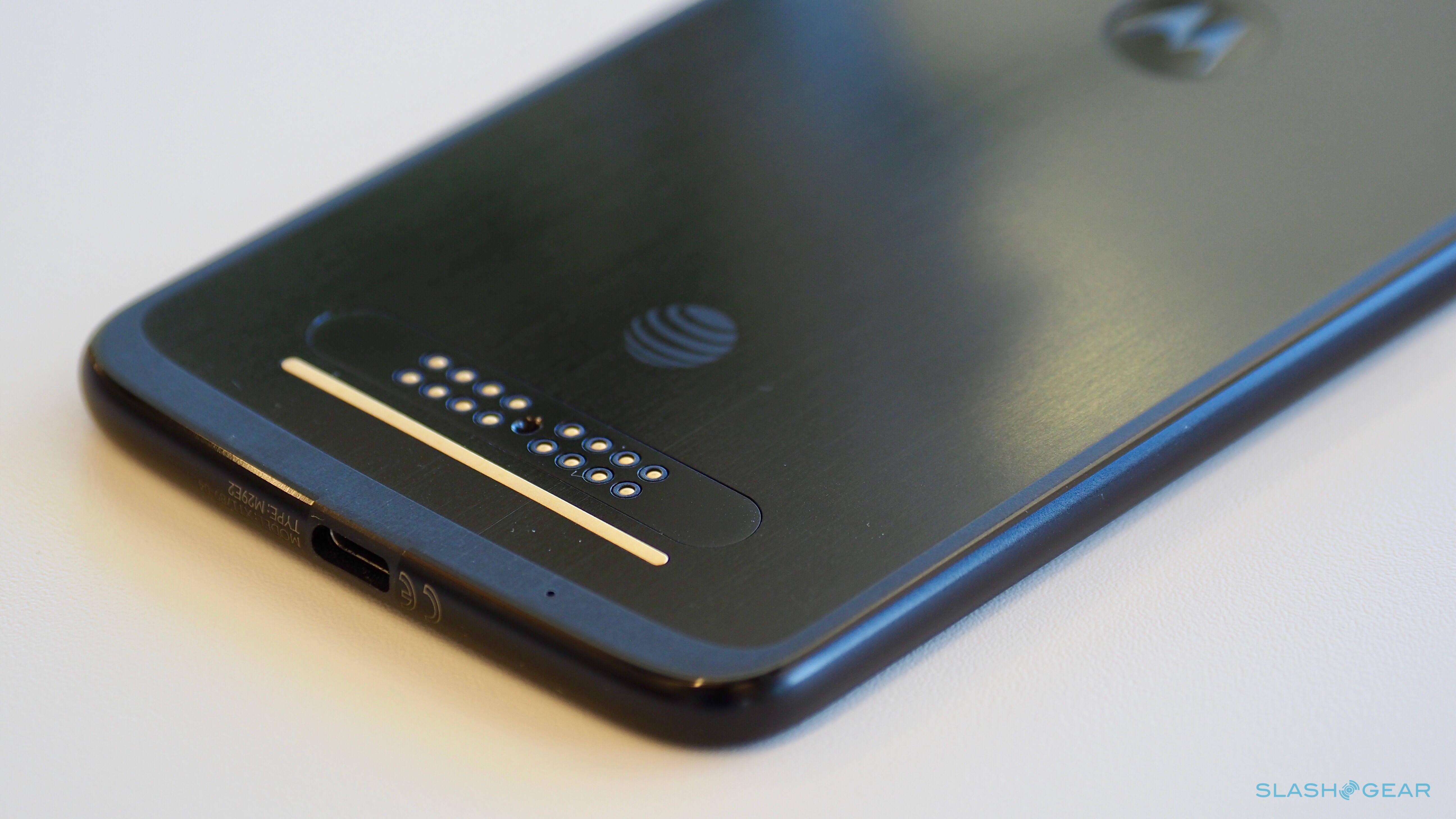 Up top is the speaker – incidentally, the only speaker on the entire device – flanked by the 5-megapixel front-facing camera on the left and a flash on the right. Image quality is reasonable as far as a selfie-cam goes, and the wide angle lens works fine for group shots. It's pretty blatantly clear that the single speaker design is meant to push owners towards investing in JBL's speaker Moto Mod. Personally, I suspect that having another speaker on the bottom edge wouldn't make that big of a difference, and the Z2 Force's mono speaker works fine. You definitely notice the difference in both sound level and sound quality with the JBL speaker, mind; be sure to check out MMtech Online's review for more.