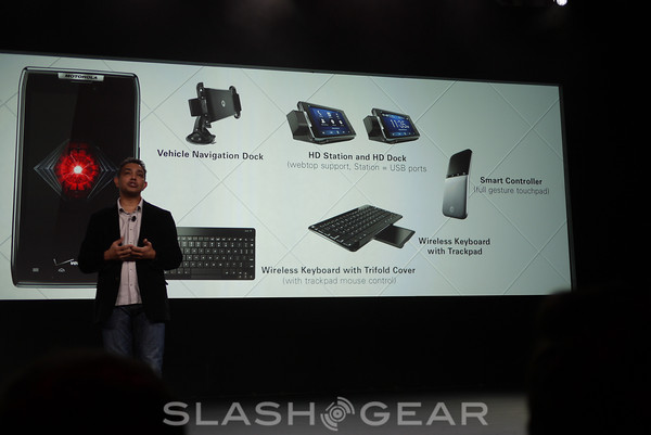 The device will be a 4G LTE device heading to Verizon as suspected. It also features Motorola's WebTop technology that integrates it with desktop interfaces as well as MotoCast and other enterprise features. It will also have a whole bunch of accessories available for it.
