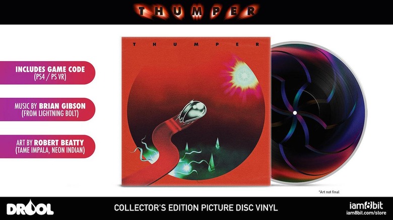 A special collector's edition for Thumper is also now available for pre-order from the online shop iam8bit. For $45 the set includes a code for a digital copy of the game (PS4 or Steam) and the Thumper soundtrack on vinyl, complete with exclusive artwork by Robert Beatty.