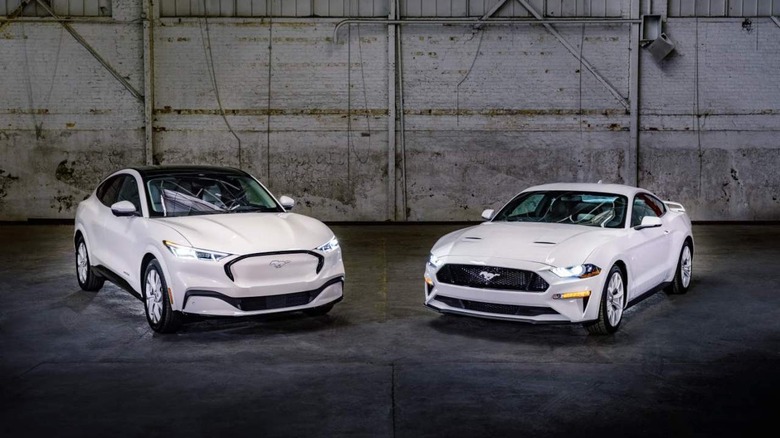 While the Mustang from 1993 was a convertible featuring white paint, white wheels, a white interior, and a white convertible top. The modern Ice White Edition Appearance Package is only offered on coupe versions of the cars. On the Ice White Edition Mustang Mach-E, the EV is painted in Star White Metallic Tri-Coat combined with Star White mirror caps and wheel lip moldings.