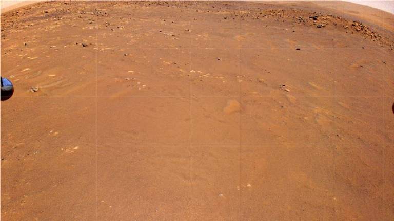 While the takeoff location for the fifth flight will be the same, where the helicopter lands will be different. During the fifth flight, Ingenuity will climb to an altitude of 16 feet and retrace its course from the first four flights by heading south 423 feet. Rather than turning around and coming back to its starting point as it has previously, Ingenuity will climb to a new height of 33 feet while NASA takes some color and black-and-white images of the area.