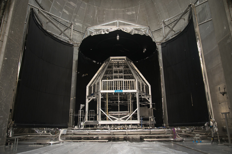 The chamber can be lowered to -250 degrees Fahrenheit, or raised to 300 degrees. That way, NASA can emulate the sort of environments that Orion will have to perform in as it flies in and out of sunlight and shadow. It's not an even heating or cooling, either, with a special "Heat Flux" system able to apply excessive temperatures to specific parts of the spacecraft to make sure it all holds up.