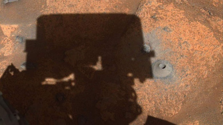 The researchers believe the rock chosen for the first sampling attempt wasn't strong enough to produce a core. In the close-up image of the borehole, we can see that there is some material in the bottom of the hole. The core they hoped to obtain is either in the bottom of the hole, in the cuttings pile stacked around the hole's rim, or is a combination of both places. Ultimately, NASA believes it was the properties of the rock that prevented a core sample from being collected and not a fault of Perseverance. The next sampling attempt will be conducted in September.