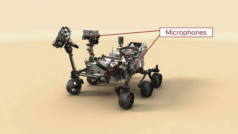 Both the microphones used aboard the rover are commercial off-the-shelf components. NASA fitted one microphone to the side of the rover's chassis. The second is on the mast near the SuperCam laser instrument intended to investigate the atmosphere of the Red Planet and rocks. The microphone on the mast records the sounds of the zaps made by the laser pulses used to study rocks.