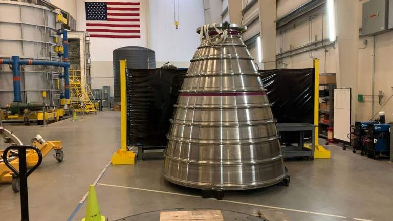 That means the RS-25 engine nozzles will be subject to extreme base heating, especially during the first two minutes of flight. The nozzles were improved by adding insulation. Another improvement has to do with where the liquid oxygen tank sits in relation to the four RS-25 engines on the SLS. The location of that tank results in high pressure at the RS-25 inlets. The nozzles had to be certified to withstand that pressure and were able to do so with minimal upgrades. All 16 former space shuttle main engines completed acceptance testing in April 2019.