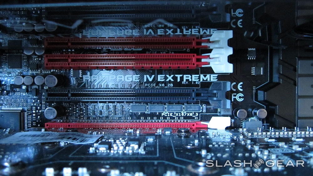 Next up let's talk about RAM. Surrounding the CPU in a rather nice looking display are 8 G.Skill Ripjaws Z 4GB DD3 cards at 2133 MHz. That means you have a whopping 32GB of RAM at your disposal – likely more than you'll ever need, but there to ensure that everything runs extremely smooth. Indeed, that RAM helps make this computer incredibly fast, regardless of what you're doing. You can play a game with all the settings maxed (more on that later) and never have to worry about stuttering, thanks partially to the amount of RAM you've got under the hood.