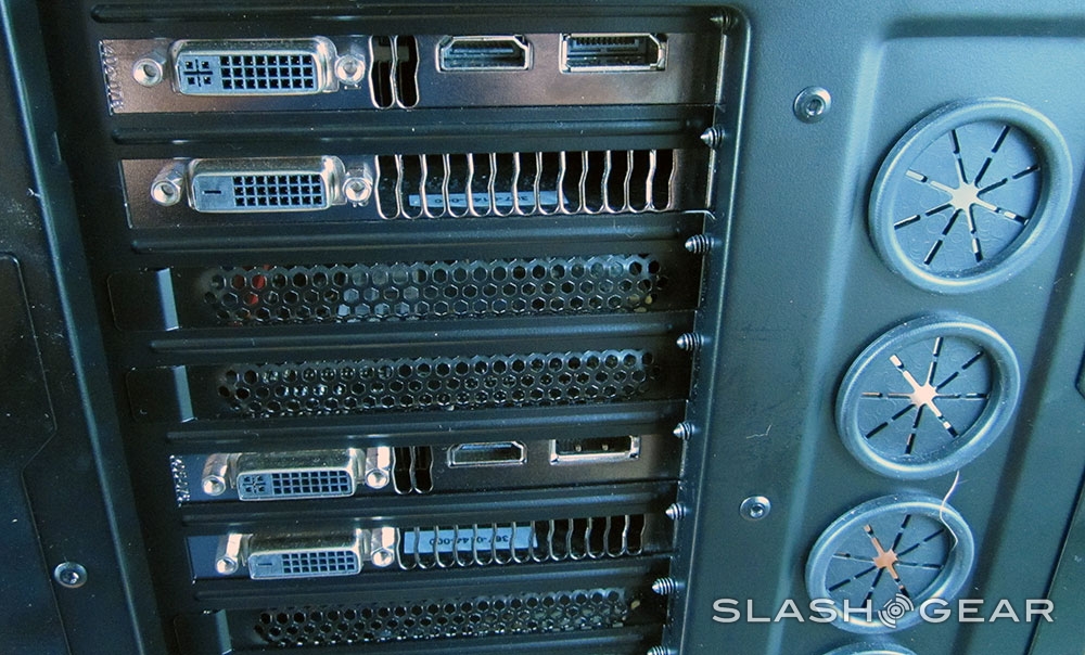 The dual SLI EVGA NVIDIA GTX680 graphics cards help with that too, naturally. With 2GB of video RAM each, this SLI setup can handle anything you can throw at it, as far as gaming goes. The GTX680 is one of NVIDIA's enthusiast-level cards, meant only for those who take PC gaming incredibly seriously, and this computer uses two of them. Of course, installing two of the best GPUs around makes for a pretty significant price hike, but with these two working together, you won't have to worry about updating your graphics hardware anytime soon.