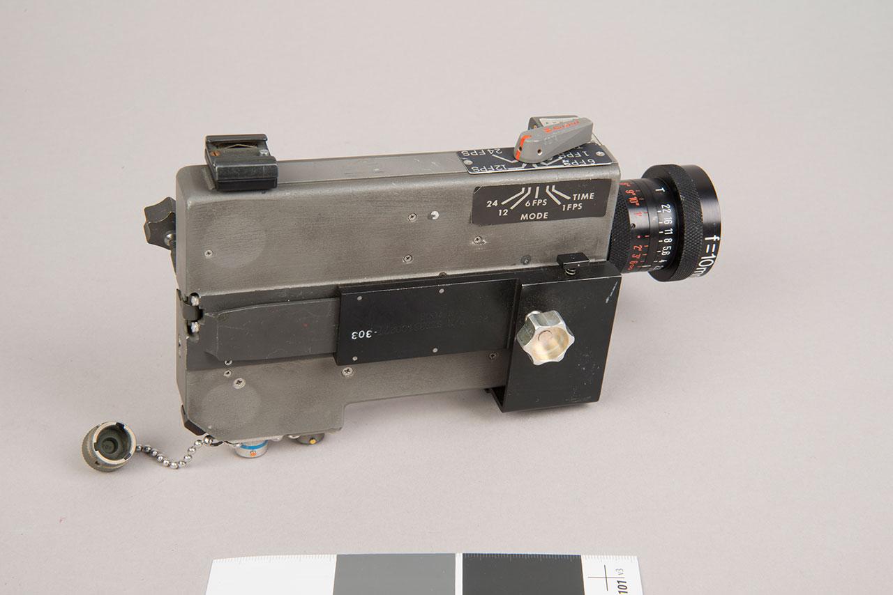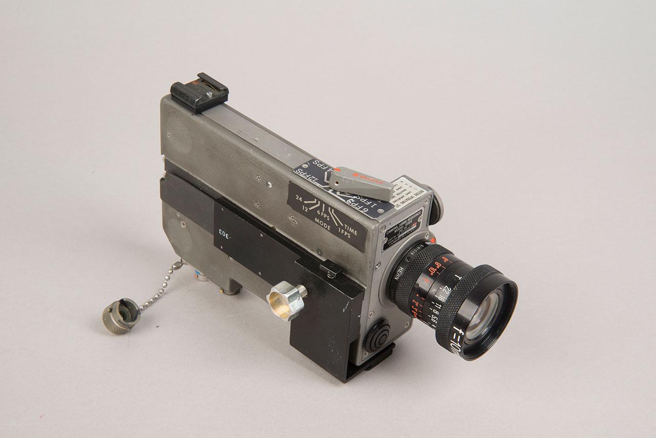 Apollo 11 photo AS11-36-5389 shows the camera mounted to a crash bar aboard the craft.